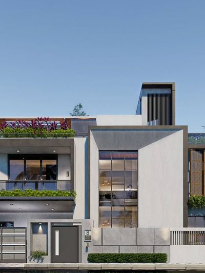 Indian Modern Style - We blend contemporary lines with earthy Indian touches, like Athangudi tile architecture and exposed brick interiors.