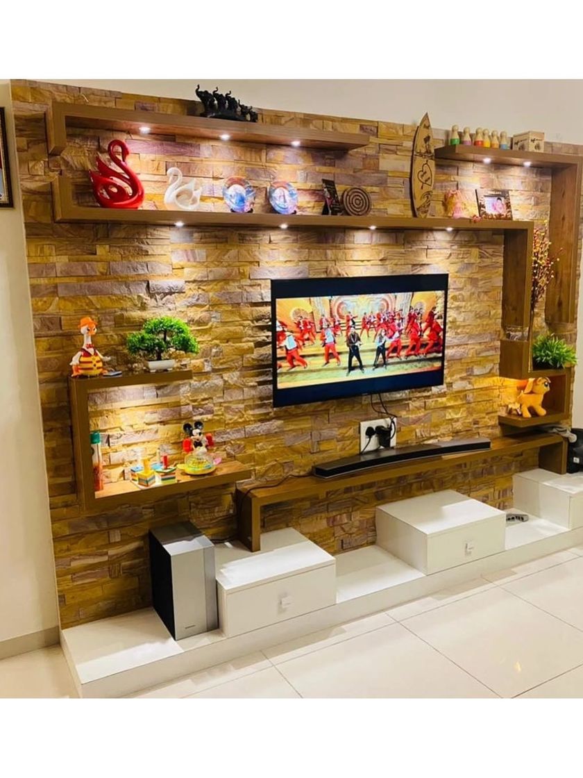 We design living areas that are the heart of the home, perfect for relaxation and entertainment. Our custom TV units combine style with storage, featuring options like stone cladding, ambient lighting, and sleek finishes.