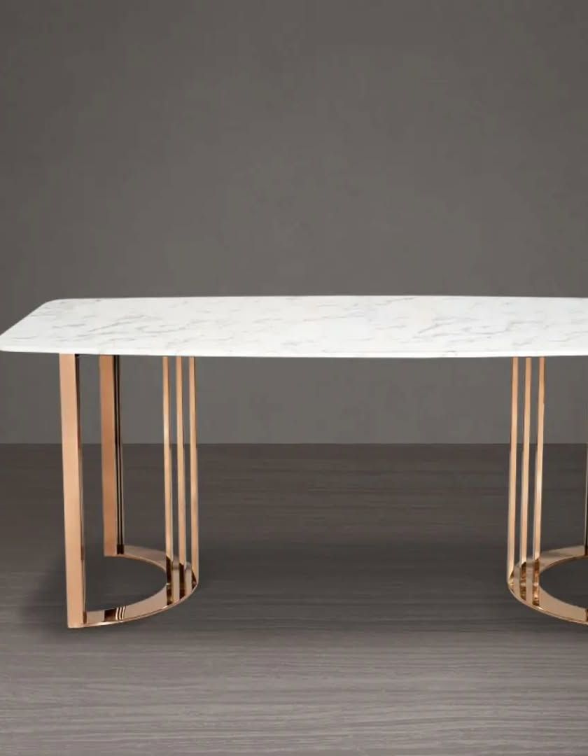 We create make-to-order dining tables and chairs that fit your exact specifications. Choose from a range of materials including teak wood, metal frames, and various marble or glass tops to build the perfect dining set for your space.