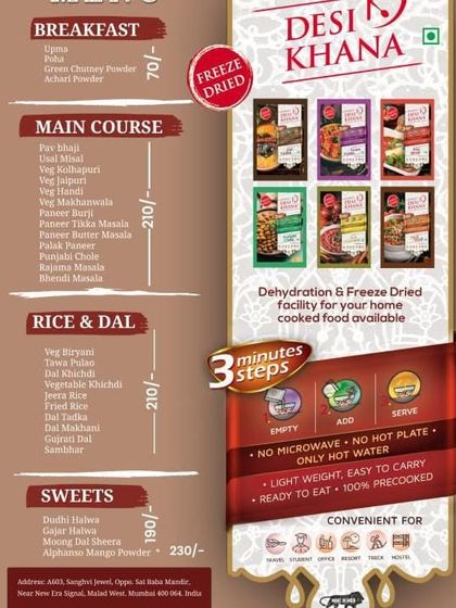 We offer over 25 pure veg and Jain Indian meals that are freeze-dried, need only hot water, have no preservatives, and are ready in 3-5 minutes for easy travel and home use.