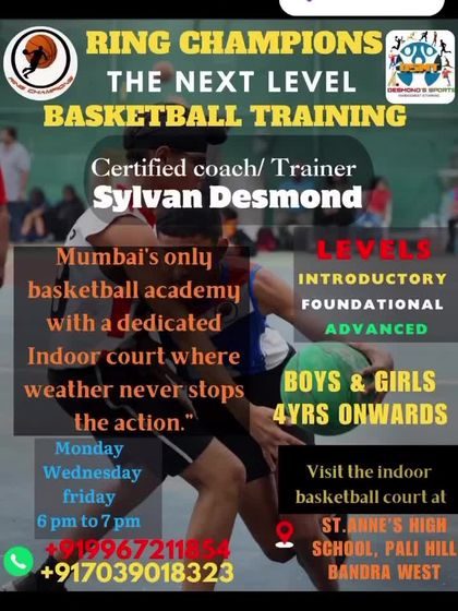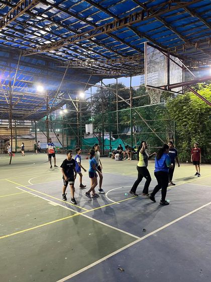 Here's a look at my court at St. Anne's High School in Bandra West. The full-size court is covered to protect you from the Mumbai sun and monsoon, and equipped with floodlights so you can play well into the evening.