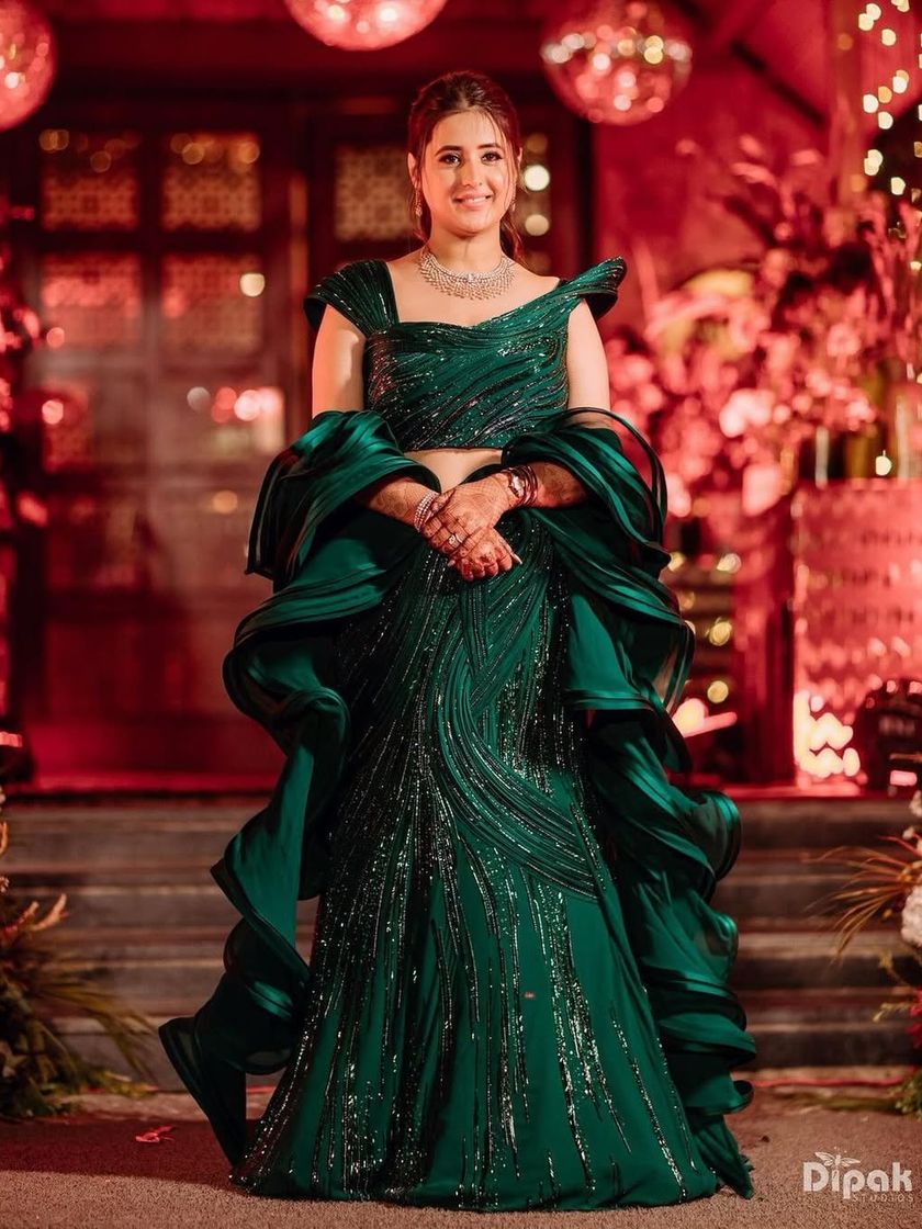 For events like Mehendi, Haldi, or Sangeet, I love to play with bold and joyful colors. This collection showcases looks that are full of life, featuring bright yellows, oranges, pinks, and greens, perfect for daytime celebrations and festive nights.