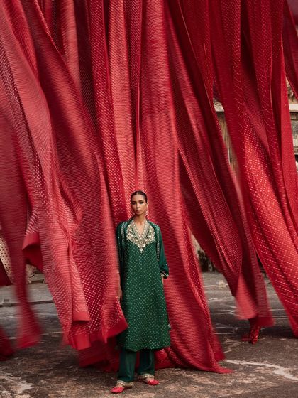Reimagining Indian Textiles - Big on Indian crafts - Bandhani, Ajrakh, Banarasi. I love making them fresh, proud, and part of my visual playlist.