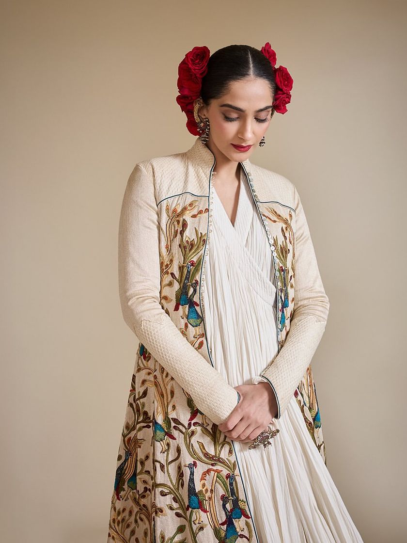 My heart belongs to Indian craftsmanship. This is a collection of looks celebrating our rich heritage, from intricate Kaduwa Banarasi and Bandhani sarees to modern interpretations of traditional weaves and drapes.