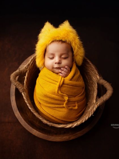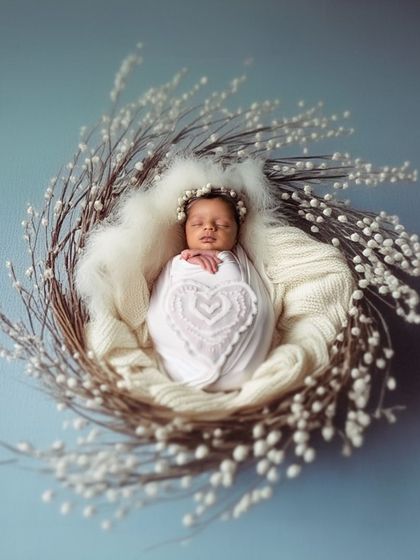 I do newborn photoshoots in my studio where I handle all props, take both posed and creative baby portraits, include close-up detail shots, and make sure the session goes at your baby's pace.
