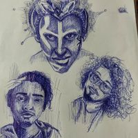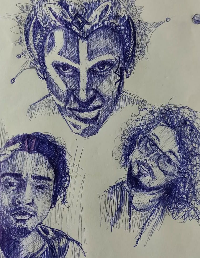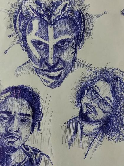 Every digital piece starts with a pen and paper. This is where I explore ideas, practice my linework, and develop characters before they hit the screen. You can see my process and raw drawing skills in these ballpoint pen sketches.