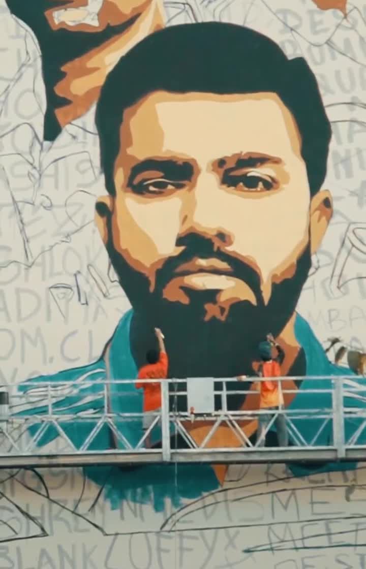 Beyond letters, I paint large-scale realistic portraits and characters. This includes everything from sports icons like Rohit Sharma to traditional Indian mythological figures like Krishna, showcasing detailed brush and spray can work.