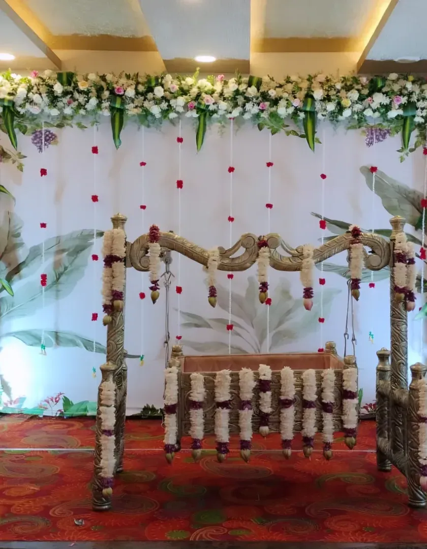 We specialize in creating beautiful and respectful decor for all your family's traditional events. Our services cover baby showers (Seemantham/Godh Bharai), naming ceremonies, cradle ceremonies, dhoti functions, housewarmings (Griha Pravesh), and baptisms, with options for both floral and balloon-based designs.
