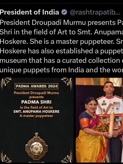 My work is driven by a deep passion for preserving the knowledge systems of Bharat. I am honored to have my efforts recognized with awards like the Padma Shri, and I actively share my knowledge at national and international conferences, advocating for the art of puppetry.
