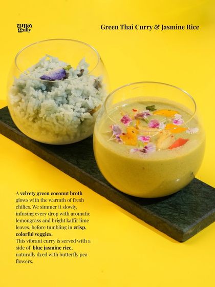 If you want something for a small get-together or just to treat yourself, my platters are loaded with flavour and look pretty cool. Lebanese Mezze Platters have hummus, falafels, pita - all plant-based. Indian Charcuterie Board is my desi twist with Paneer Tikka, mini samosas, and chutneys. For some kitchen fun, try my DIY meal kit hampers like Bibimbap Noodle Jar or Thai Green Curry with blue jasmine rice.
