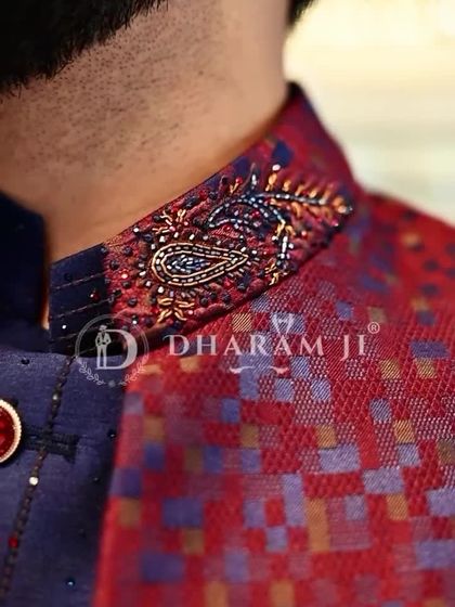 - Sherwani: Heavy Raw Silk, Matka Silk, or Brocade base with extensive Zardosi, French knot, or pearl surface ornamentation.