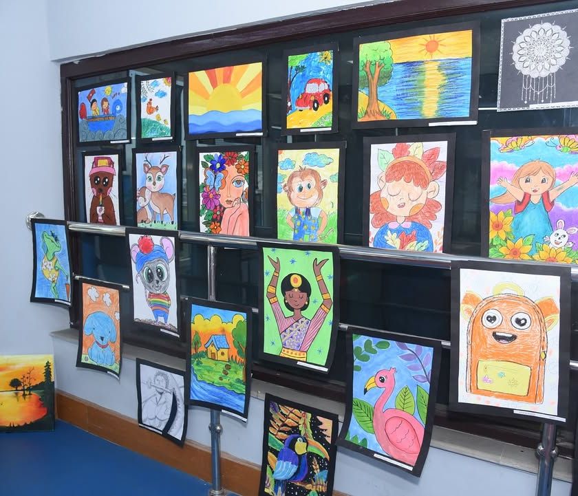 We believe every artist deserves a stage. Our annual Dhwani Kala Mahotsav features a professional Fine Arts Exhibition where students' best works are framed and displayed for all to see, providing them with real-world exposure and a moment of pride. This gallery offers a tour of the exhibition space, showing the variety of art and the community atmosphere.