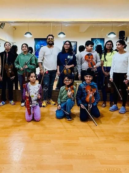 Namaste! We’re Dhwani Sangeet Mahavidyalaya, and for us, music is life, bas (that’s it). We started with a dream and a love for our culture—our founder’s portrait is always with us at every event. Kids with stage fright, now performing confidently, that’s what makes us proud. Parents trust us, even from far away, and our Dhwani Kala Mahotsav is pure celebration. Our teachers? Bohot mehnat karte hain (work really hard). Here, we all learn together, age no bar.