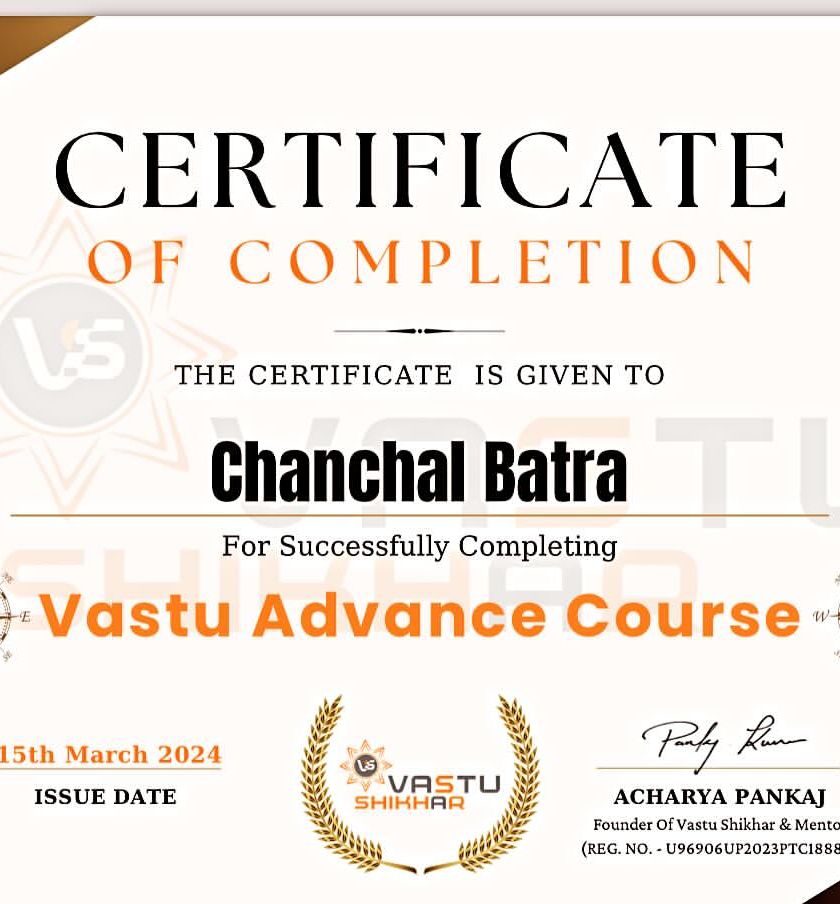 My expertise is backed by formal training and a commitment to mastering the science of Vastu. I believe in continuous learning to provide you with the most effective and authentic guidance.