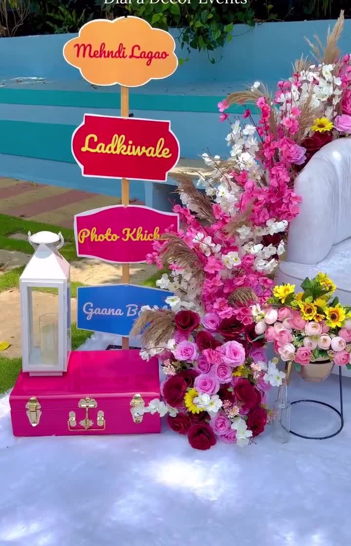 I create vibrant and fun setups for your Mehndi and Sangeet functions. My designs range from colorful backdrops with traditional elements like umbrellas and drapes to modern floral rings and custom neon signs, all within your budget.