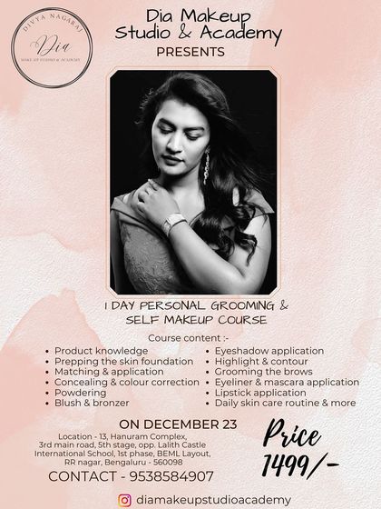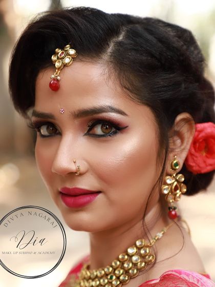 Hey, we’re DIA Makeup Studio & Academy, right here in Bengaluru. Started by Divya, our place is all about celebrating beauty - not just with makeup, but with confidence too. We love seeing brides light up, and teaching women how to feel their best is just as close to our hearts. Whether we’re glamming up a bride or sharing tips in our personal grooming course, it’s that sparkle in your eyes that keeps us going.