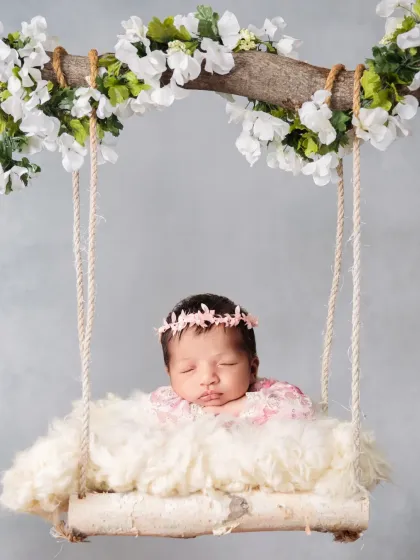 We offer safe newborn and child photography with studio or home sessions, milestone shoots for every age, and custom themed setups.