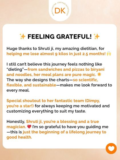 My coaching goes beyond weight loss to address specific health concerns. I create targeted plans for managing PCOS/PCOD, thyroid issues, improving gut health, and supporting new moms on their postpartum recovery journey.