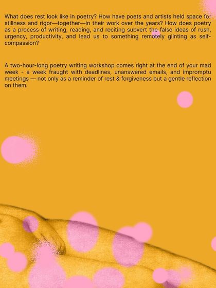 I create conditions for poetry to emerge through immersive walks, workshops, and salons. My goal is to de-pedestalize poetry, making it an embodied experience of healing and resistance.