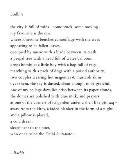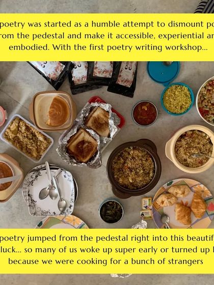I host small poetry gatherings in different Delhi spaces where we read, share, and talk about poems together without any pressure or formality.