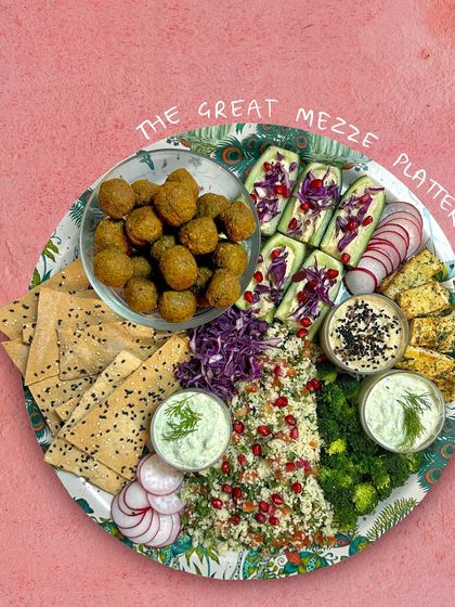- The Great Mezze Platter: Falafels, tabbouleh, two hummus, pita, all the fixings.