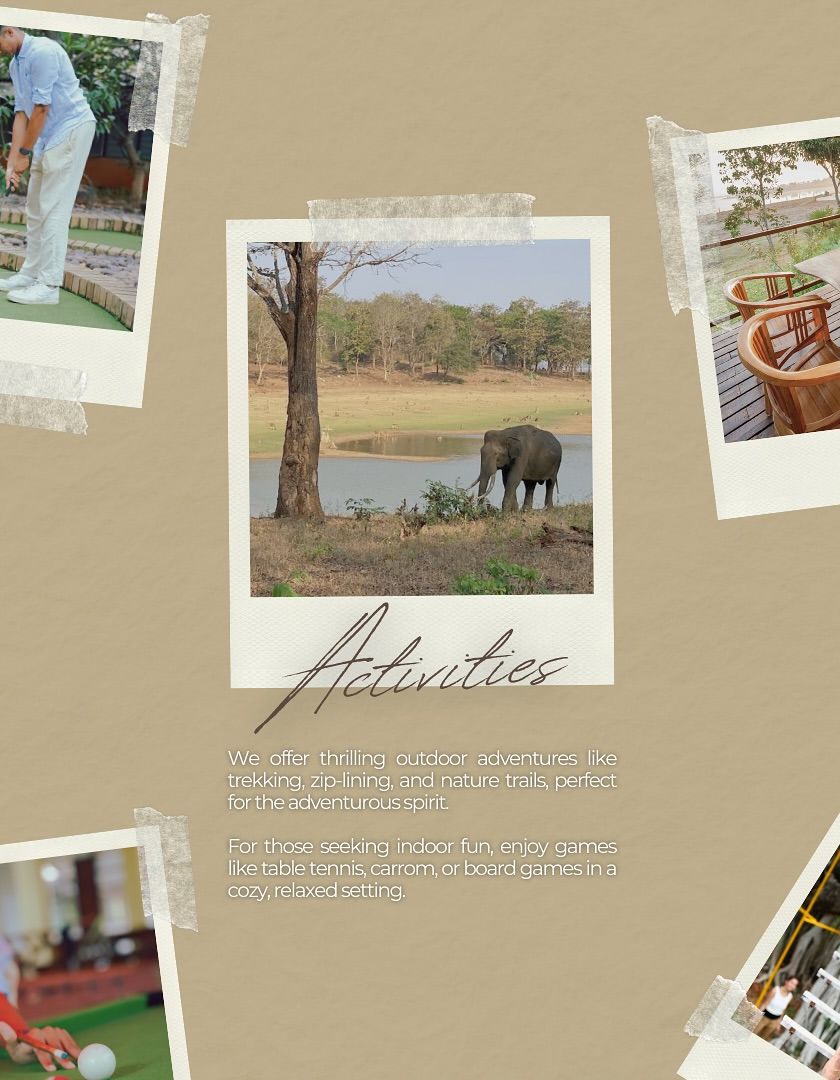We provide a range of comfortable and unique accommodation options, from rustic-chic rooms and wooden cabins to spacious yurt-style cottages. Our resorts are designed as serene escapes, with lush pathways, tranquil pools, and beautiful architecture that blends into the natural landscape.