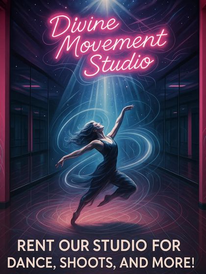 We rent out a studio with soft flooring, aerial gear, mirrors, mood lighting, and content creation tools, ready for dance, aerial, rehearsals, and shoots for up to 50 people.