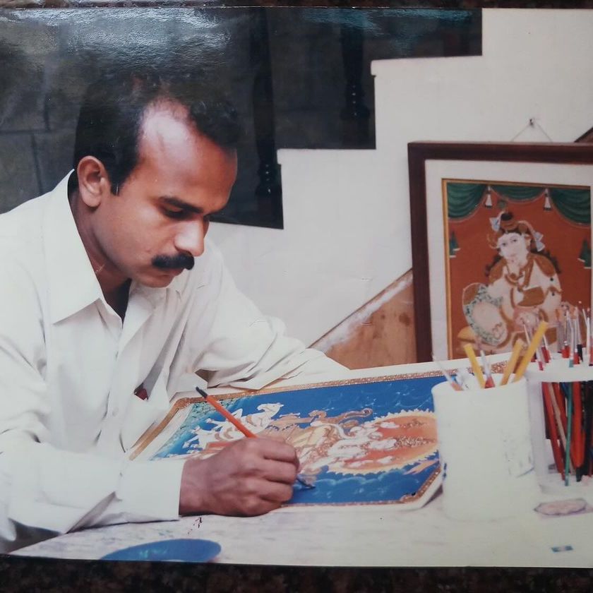Meet the master artist, Raghavendra B.B., a recipient of the prestigious Karnataka State Award with over 35 years of dedication to Mysore painting. This collection offers a glimpse into his world, his artistic process, and the accolades that recognize his profound contribution to preserving and evolving this timeless art form.