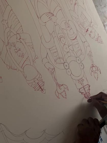 Discover the meticulous journey of a Mysore painting, from the initial hand-drawn sketch to the final masterpiece. This collection reveals the traditional techniques of gesso embossing for 3D texture, the delicate application of pure 24kt gold leaf, and the careful layering of watercolors that bring each divine figure to life.