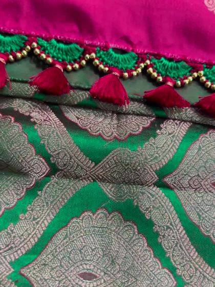 I believe the small details elevate a design from beautiful to unforgettable. This collection highlights my custom-made tassels, latkans, and delicate pearl work that add a perfect, personalized finish to your blouse.
