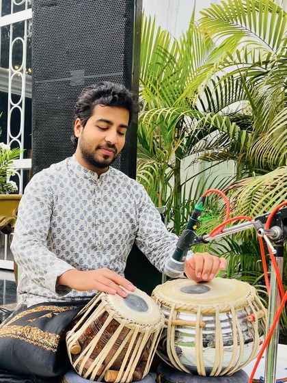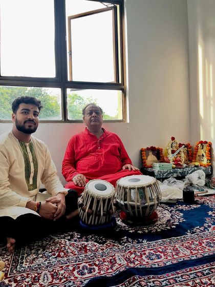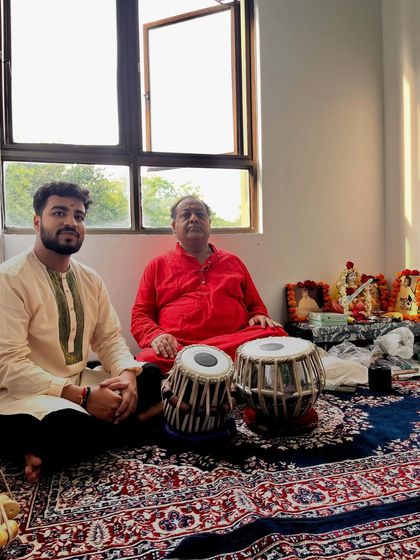 Music is at the centre of my life. Tabla and pakhavaj aren't just instruments for me - they're how I connect with something bigger. My father and guru, Shri Naveen Kumar, shaped everything I know. I follow the Guru-Shishya Parampara (teacher-disciple tradition), and I try to keep that spirit alive in every lesson. What I know is all Gurukripa (guru's blessing), and I don't pretend to know everything. We're learning together, always.
