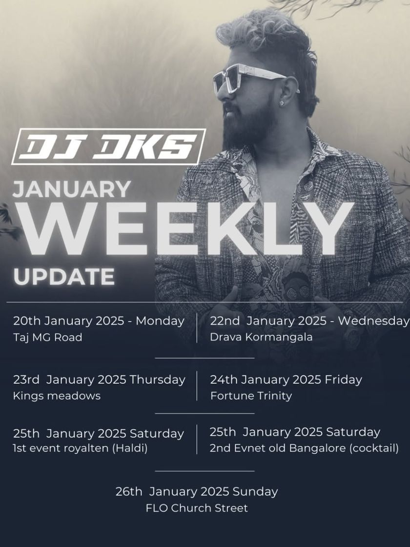 I'm always spinning somewhere in Bangalore. Here are my past weekly lineups so you can see the kind of venues I play at, from club nights to corporate and wedding events. Follow me for updates on where to find me next.