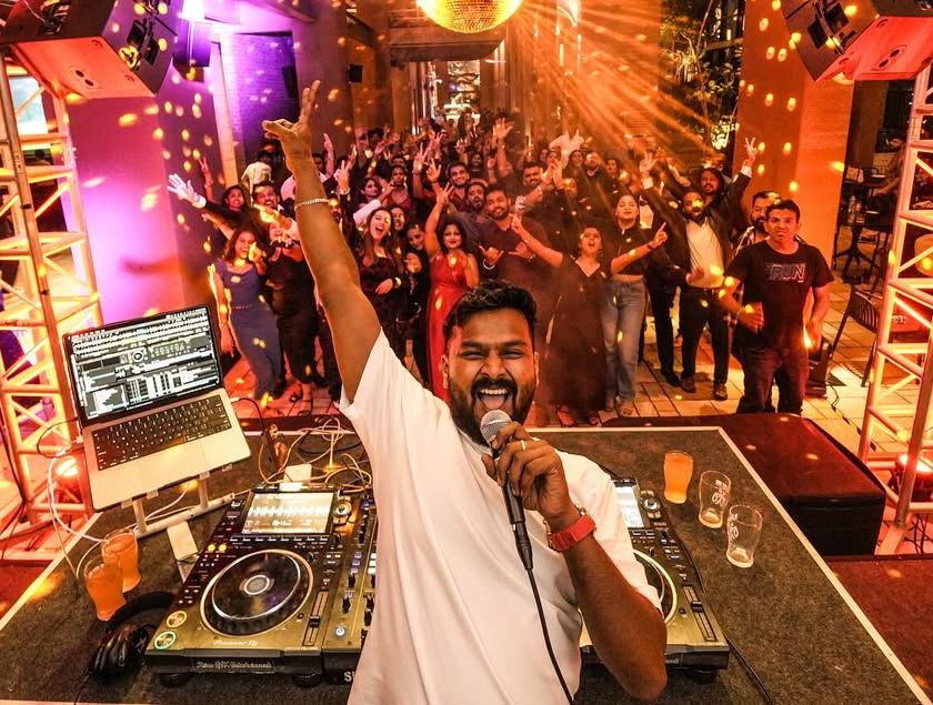 My goal is simple: keep the dance floor packed. I play an open format style, jumping between genres like Bollywood, Hip-Hop, EDM, and retro to match the crowd's energy. I'm also your MC, hyping everyone up on the mic to make sure it's never just background music.
