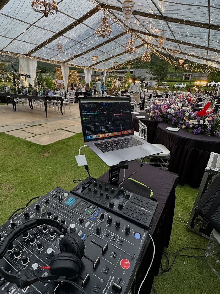 A look at my workspace where the magic happens. Whether it's a massive club console or an intimate wedding setup, this is my zone. Here are some shots of me in action at various events and venues.