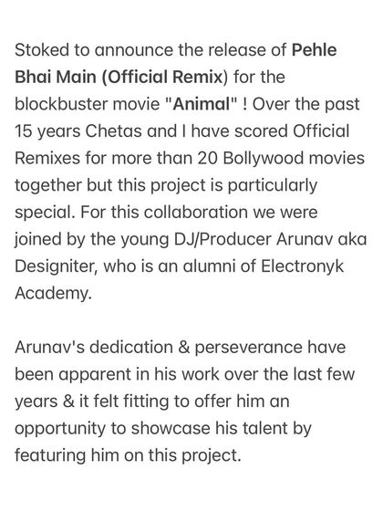 I have been fortunate to work on official remixes for over 20 Bollywood movies and collaborate with incredible artists and labels like T-Series and Merchant Records. This collection showcases some of those projects, including my work with talented vocalists on my 'Adhunyk Awaazein' series.