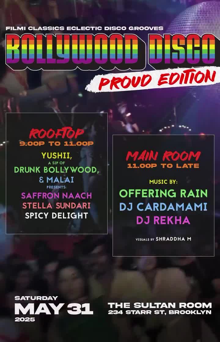 My events are built on creating inclusive and joyful spaces for the queer and South Asian communities. From the annual "Bollywood Disco: Proud Edition" to collaborations with drag artists and queer collectives, I produce events that celebrate radical joy and chosen family. These parties are a space to be loud, be proud, and dance freely.