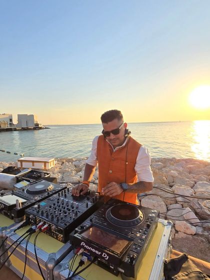 Destination weddings are not just about the night parties. I curate custom playlists for daytime events like Mehndi brunches or beach sundowners, creating a laid-back atmosphere with a mix of chill house, lounge, and groovy tunes. The music is designed to complement the setting, whether it's a sunny beach in Goa or a garden in Pushkar.