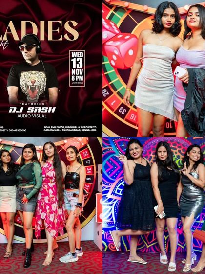Wednesdays are for the ladies. I host regular Ladies' Nights across Bangalore, creating a fun, safe, and high-energy environment with free drinks and an exclusive audio-visual set of Bollywood and commercial hits. It's all about the girl gangs and good vibes.