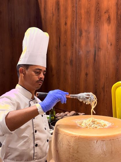 Live Cheese Wheel Pasta - Our Cacio e Pepe, tossed live in a cheese wheel, is a crowd magnet and a feast for the senses.