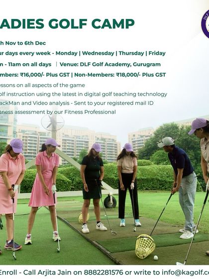 We run ladies' golf sessions with group coaching, real-time swing analysis, indoor simulators, and fitness training, open to all skill levels.