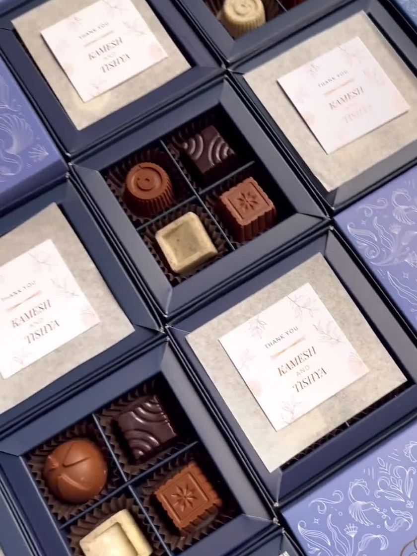 Our handcrafted chocolates are perfect for gifting. We offer assorted truffle boxes and can create custom chocolates with personalized messages, names, or logos for events like birthdays, weddings, and baby announcements.