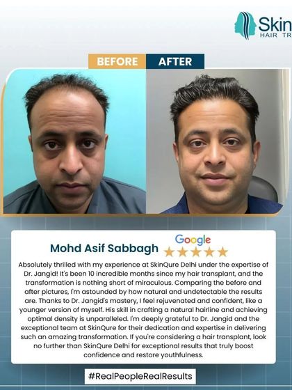 Namaskar, hum SkinQure Hair Transplant hain. 15 saal se dermatology mein hain, aur 10 saal se hair transplant ka kaam kar rahe hain. Bahut log galat transplant ke saath aate hain - unnatural hairline, scarring, sab dekha hai. Tab socha, kuch badlav laana hai. 4-5 saal se corrective hair transplant pe focus hai, extra training bhi li. Humara simple funda hai: pehle diagnosis, fir treatment. Safety sabse pehle, aur hum hamesha latest technique seekhte rehte hain, world conferences attend karte hain. ‘Degree nahi hoti hair transplant surgeon ki’ - trained doctor hona zaroori hai.