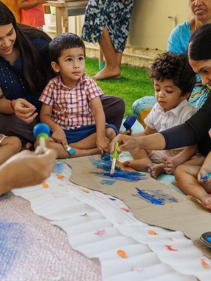 We offer parent-toddler programs and sensory workshops designed for purposeful engagement and bonding. Our sessions uniquely integrate sustainable art and messy play to foster curiosity and holistic development.