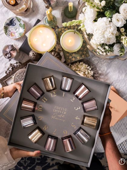 - Diwali? I make metallic votive candles and divine pieces with Ganesh-Laxmi figures, all with rich, Royal Oud fragrance for that festive feel.