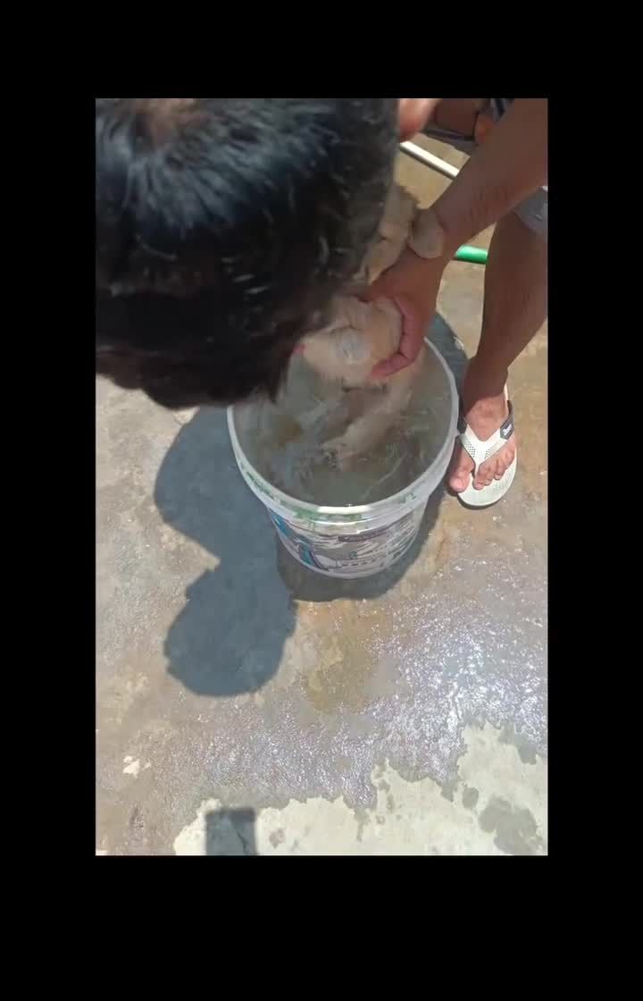 I provide a straightforward, hands-on bath using a bucket or tub, often outdoors. This gentle, no-gadget approach helps dogs, especially anxious ones, stay calm and comfortable during their wash.
