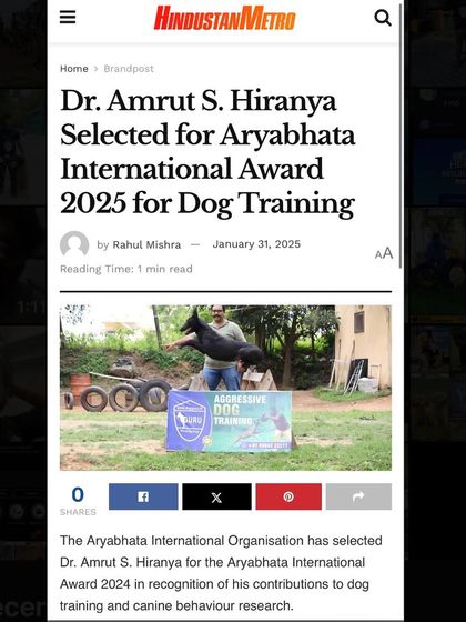 My work in canine psychology has been recognized with several awards, including an honorary PhD from the Global University of Boston and the Aryabhatta International Award. I am also an advisor to police dog squads and a certified behaviorist.