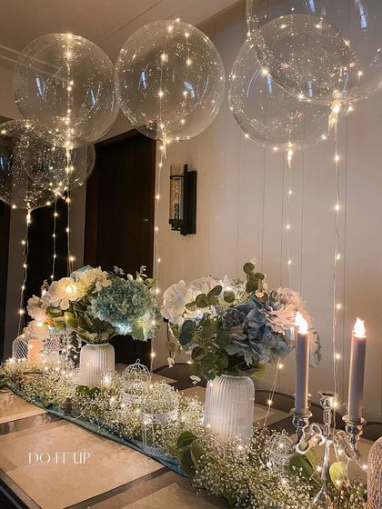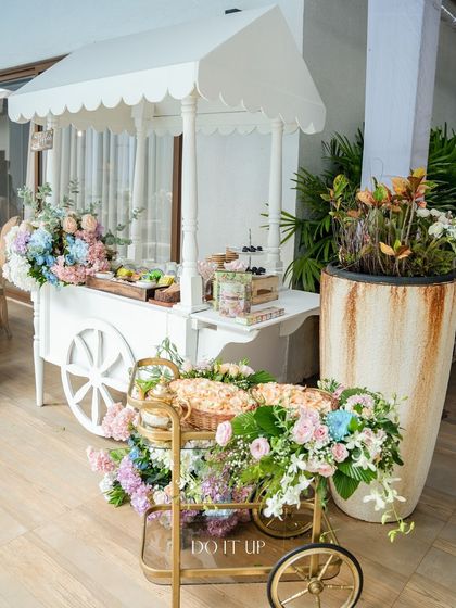 We specialize in creating intimate and magical bridal shower settings using personalized floral arrangements, elegant decor elements, and themed props. Our designs blend traditional elements with modern aesthetics, featuring chandeliers, string lights, and custom signage.