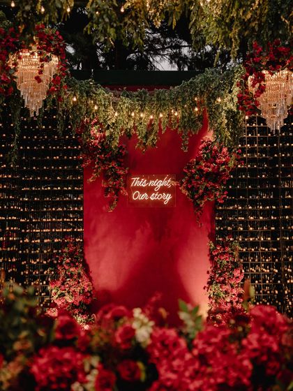 This is the celebration. My designs for sangeets and receptions are focused on creating an atmosphere of glamour, energy, and magic. I use dramatic lighting, from ceilings of fairy lights to statement chandeliers, and rich textures like velvet, paired with bold florals to create an immersive space where you and your guests can dance the night away.