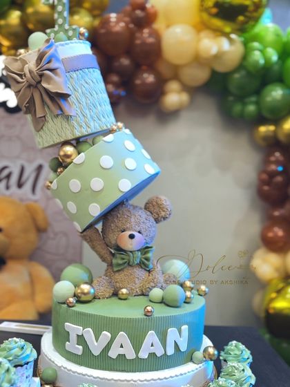 I make fully eggless designer cakes based on your ideas, including gravity-defying and custom themed styles, and I set up big cakes at your venue for a perfect finish.