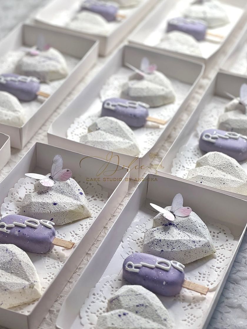 A sweet way to say thank you to your guests! I design personalized return favors for baby showers, birthdays, and other events. Based on your theme, colors, and budget, I can create custom boxes of my popular cakesicles or geometric chocolate hearts.